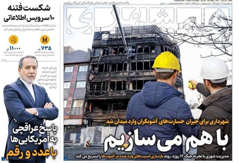 به گزارش شبکه اطلاعرسانی «مرصاد»؛ ۲ هزار و ۴۲۷ شهید نتیجه استفاده دشمن از فضای بیدر و پیکر مجازی، روایت غرب از امپریالیسم ترامپ، چه کسی فرمان خشونت داد، آیندهای روشن خواهیم داشت و…از جمله تیترهای روزنامههای شنبه ۴ بهمن ۱۴۰۴ هستند.