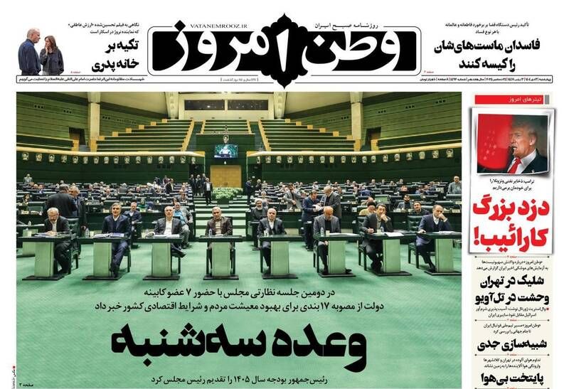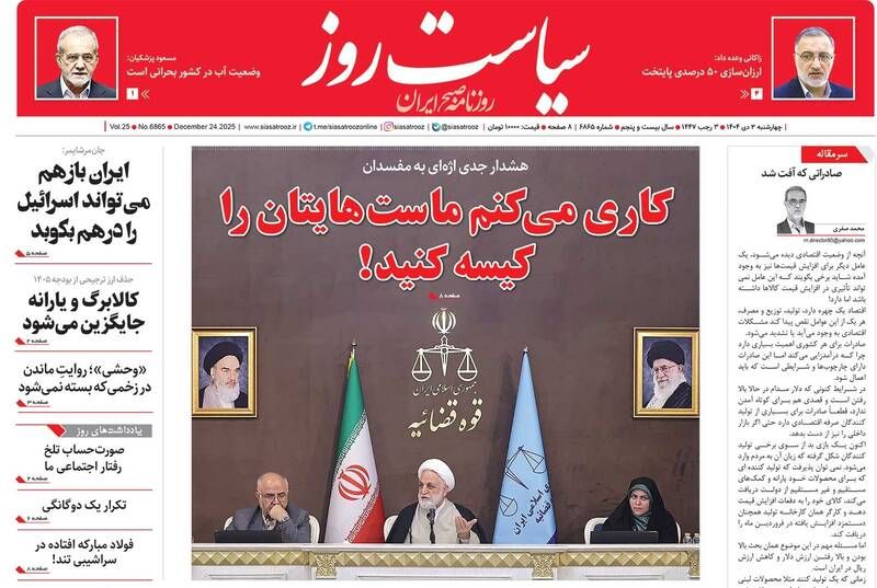 صفحه نخست روزنامههای چهارشنبه ۳ دی ۱۴۰۴