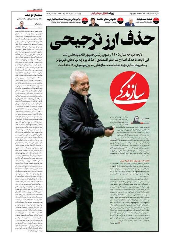 به گزارش خبرنگار گروه صوت و تصویر شبکه اطلاعرسانی «مرصاد»؛ بررسی پنج محور اقتصادی در جلسه مشترک مجلس و دولت، وعده سهشنبه، بودجه سختگیرانه، بودجه سوپر انقباضی، آب اولویت اول و…از جمله تیترهای روزنامههای چهارشنبه سوم دی هستند.