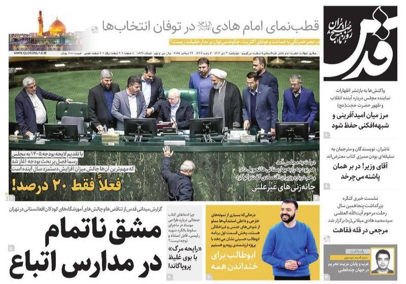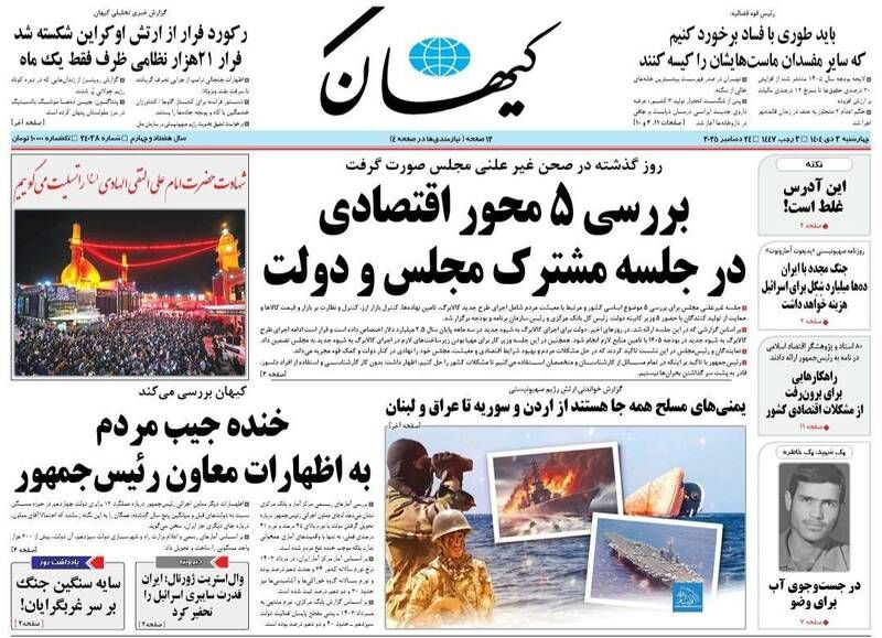 در ادامه صفحه اول روزنامههای امروز چهارشنبه سوم دیماه که مهمترین اخبار و تحولات کشور را در حوزههای سیاسی، اقتصادی و اجتماعی منعکس میکند، مشاهده میکنید.
