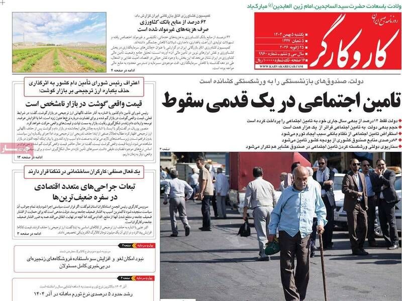 صفحه نخست روزنامه‌های‌ یک‌شنبه ۵ بهمن ۱۴۰۴