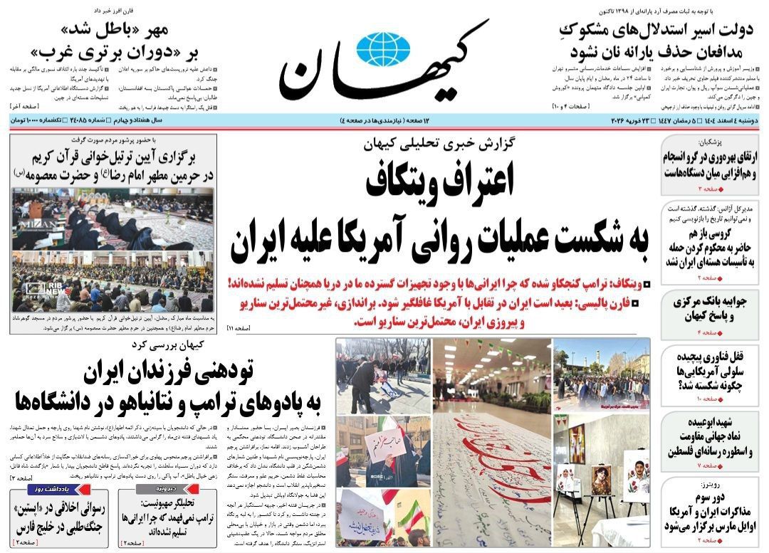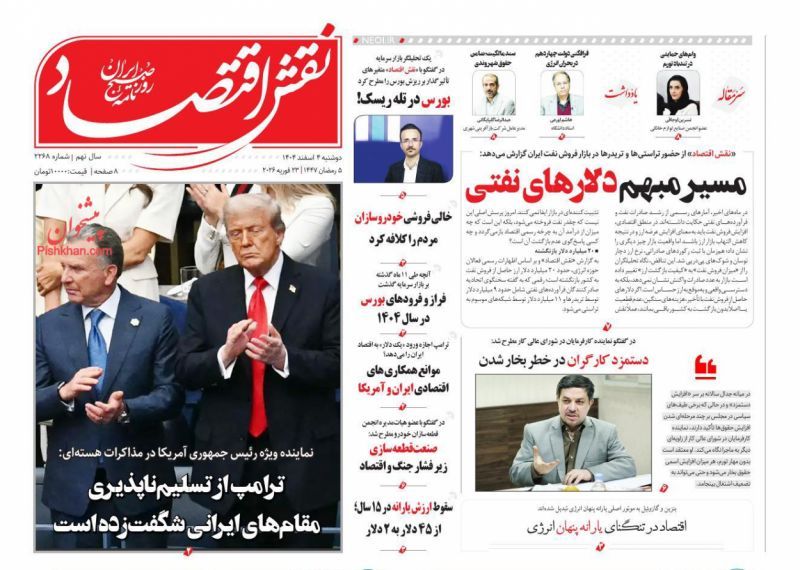 صفحه نخست روزنامه‌های دوشنبه ۴ اسفندماه ۱۴۰۴
