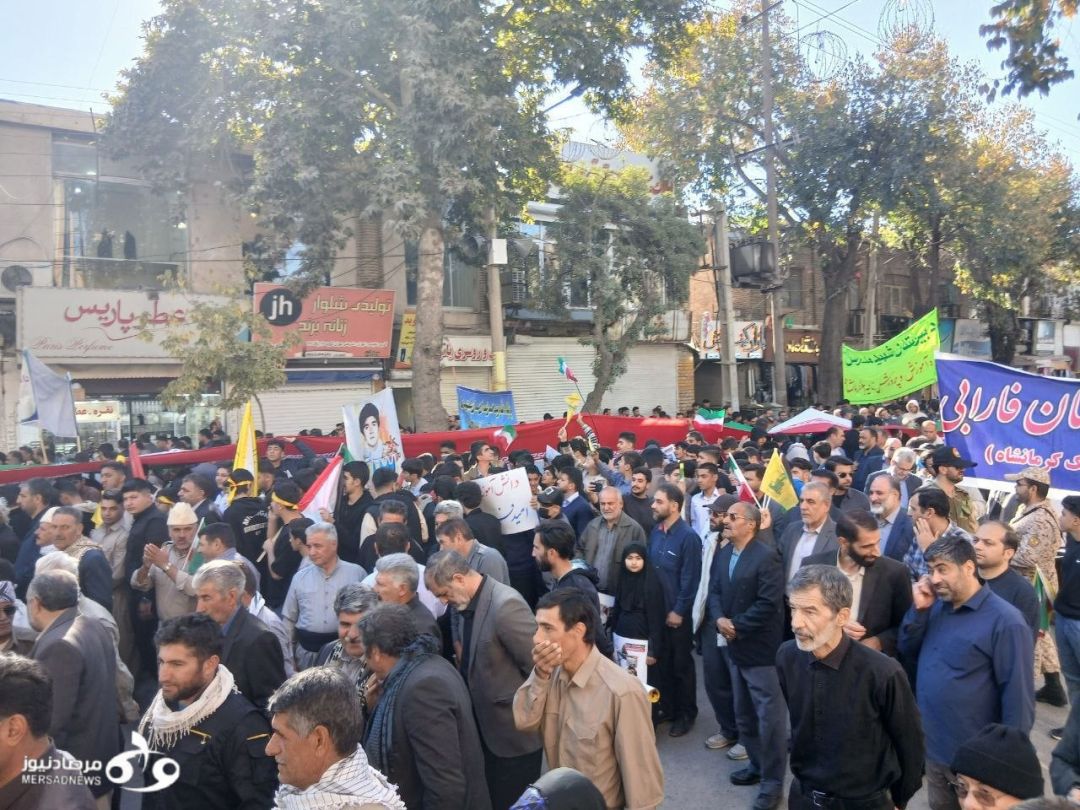 مردم ولایتمدار استان کرمانشاه، همصدا با ملت ایران، در راهپیمایی یومالله ۱۳ آبان با حضوری پرشور، انزجار خود را از رژیم کودککش صهیونیستی و حامیان مستکبر آن به نمایش گذاشتند.