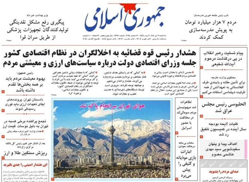 تصاویر منتخب صفحات نخست روزنامههای سهشنبه نهم دیماه منتشر شد.