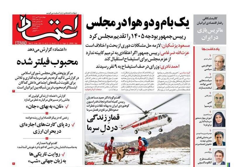 صفحه نخست روزنامههای چهارشنبه ۳ دی ۱۴۰۴