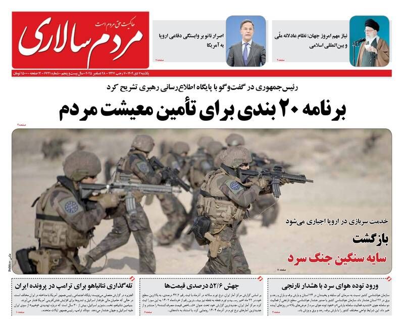 صفحه نخست روزنامههای یکشنبه ۷ دی ۱۴۰۴