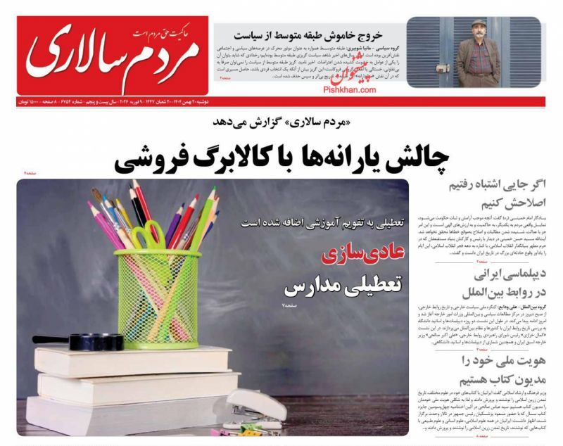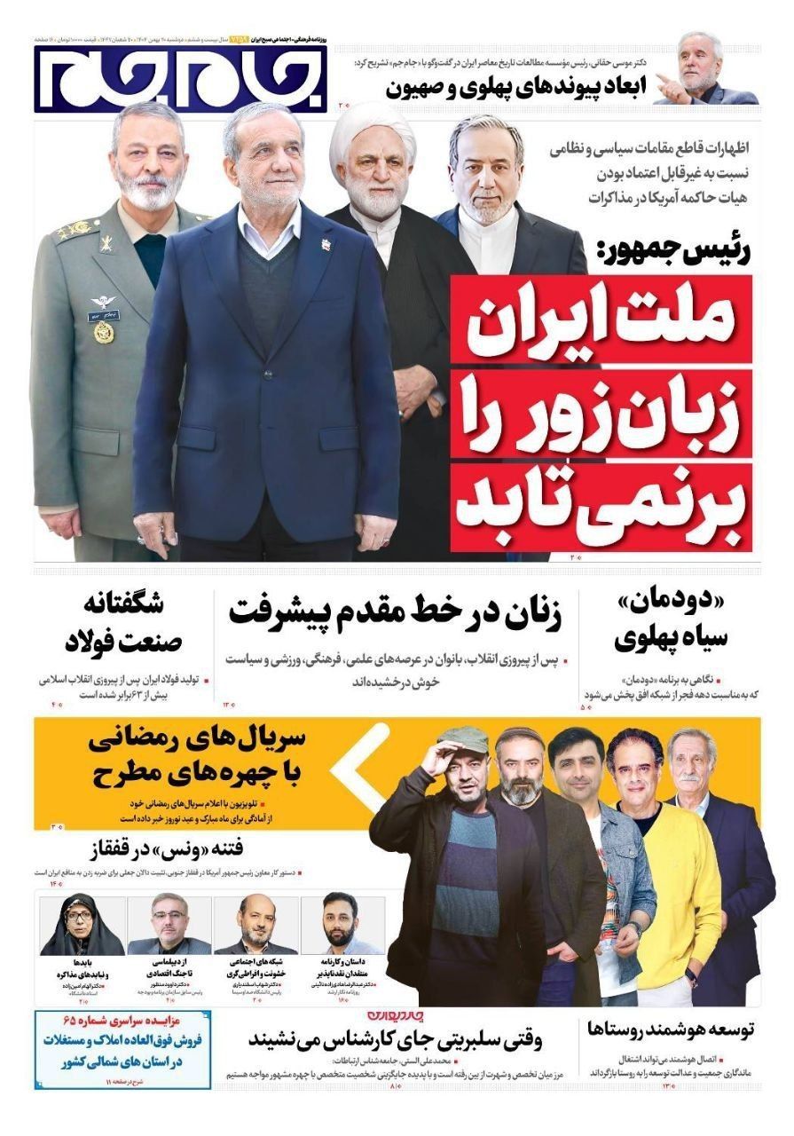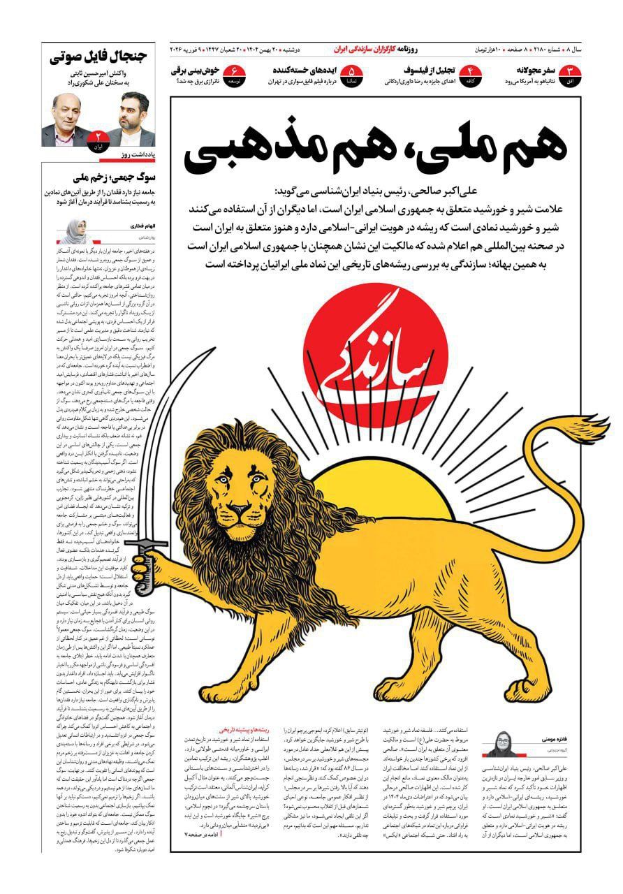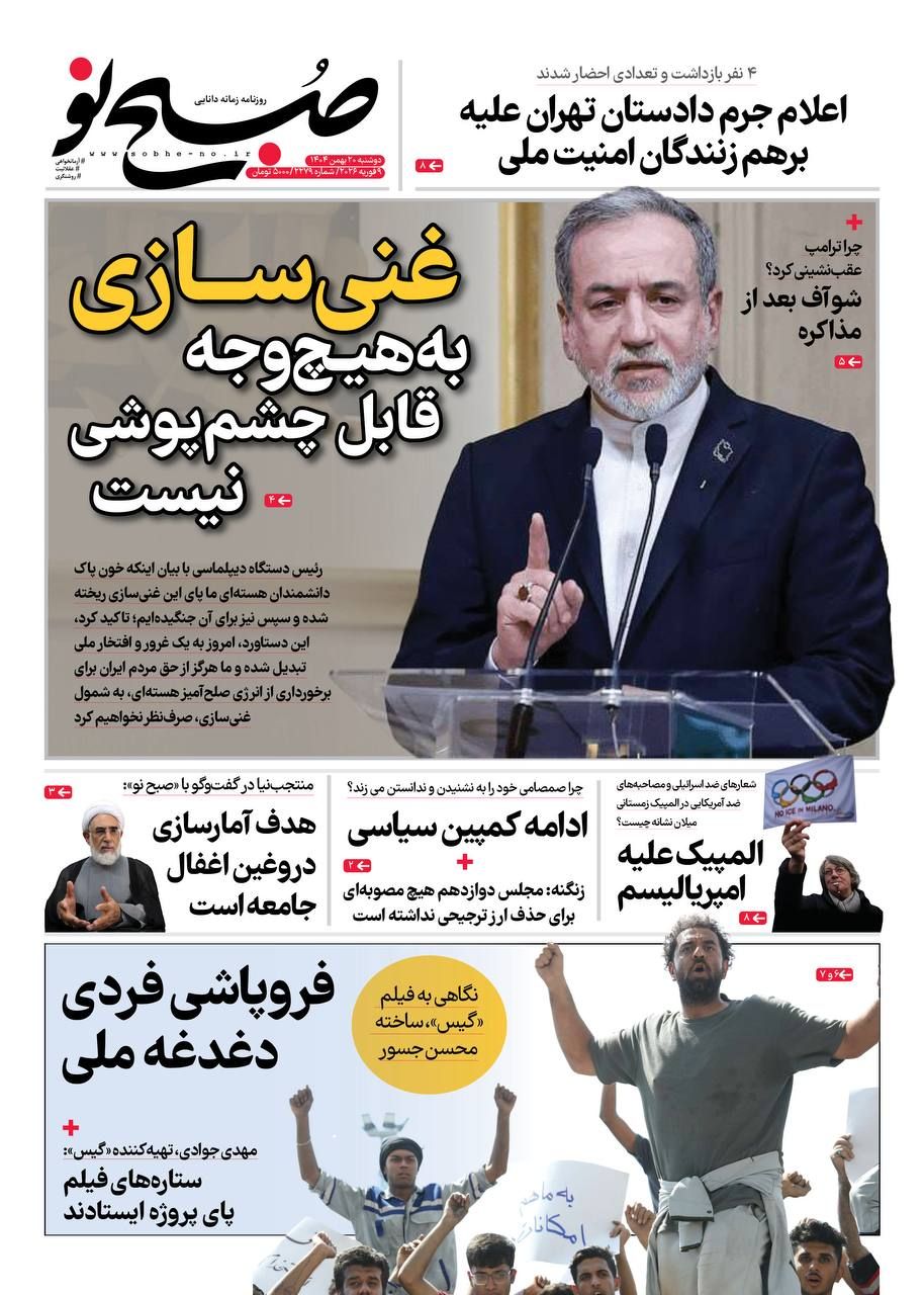 صفحه نخست روزنامههای دوشنبه ۲۰ بهمن ۱۴۰۴