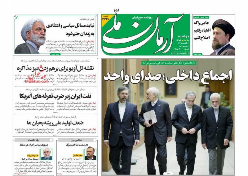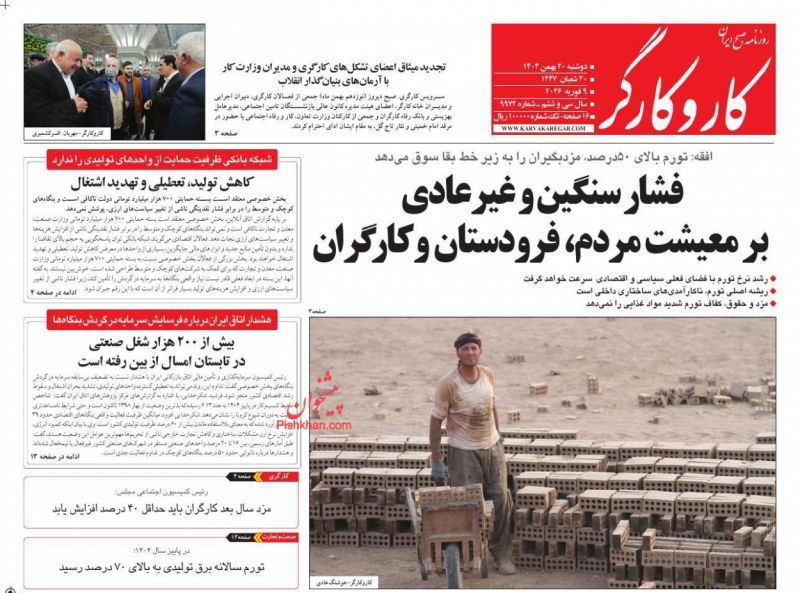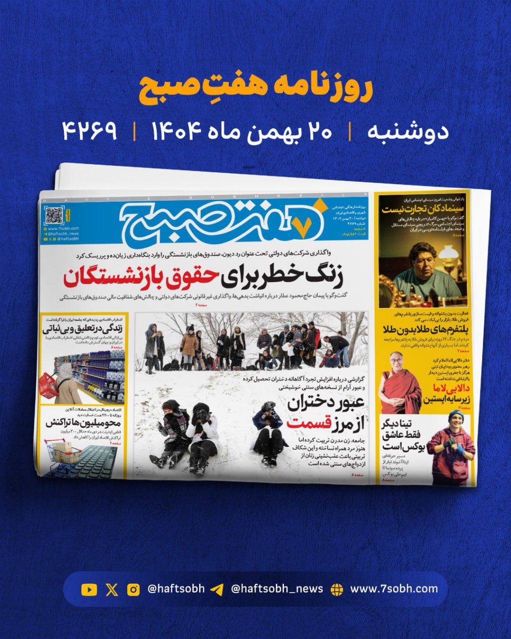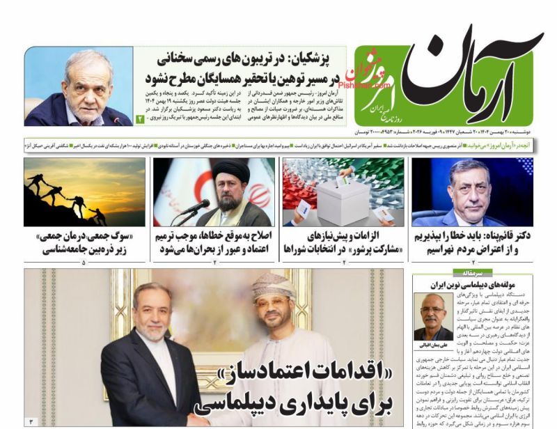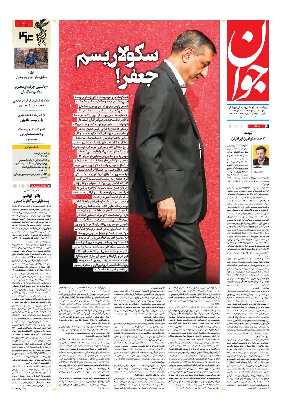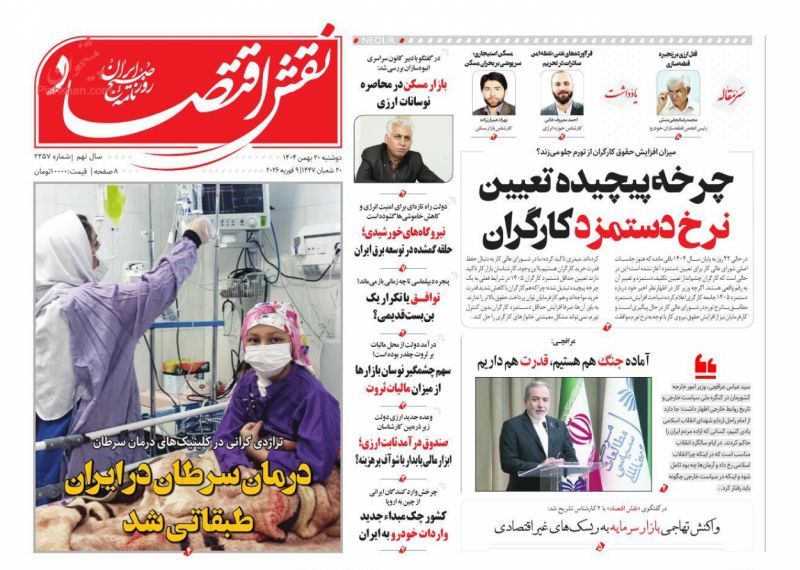 صفحه نخست روزنامههای دوشنبه ۲۰ بهمن ۱۴۰۴
