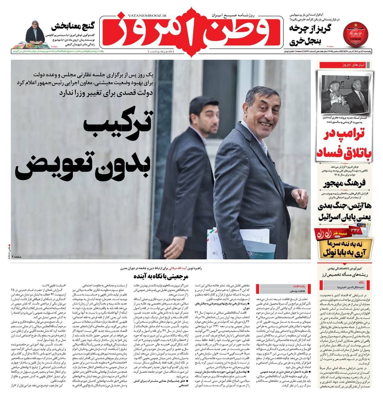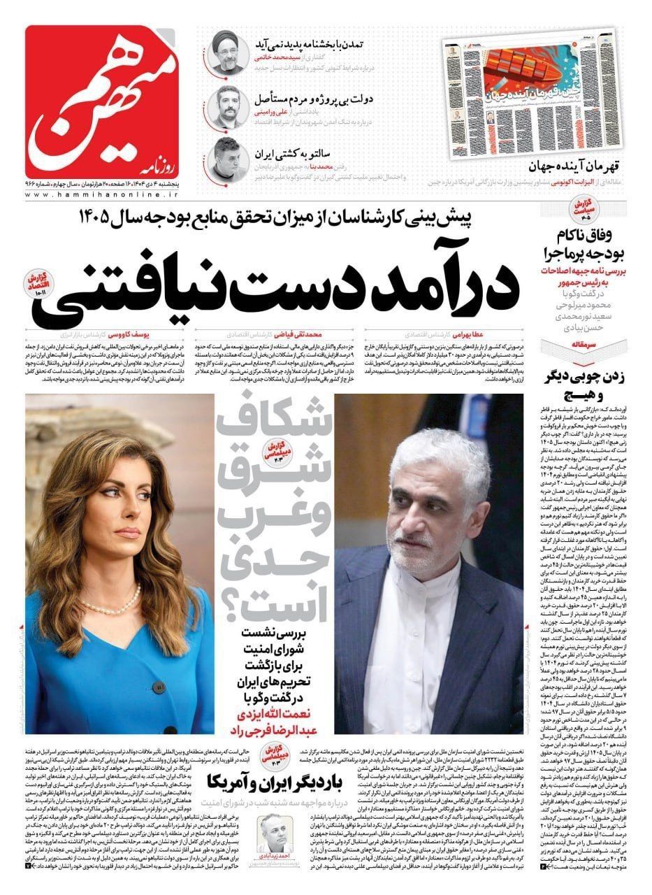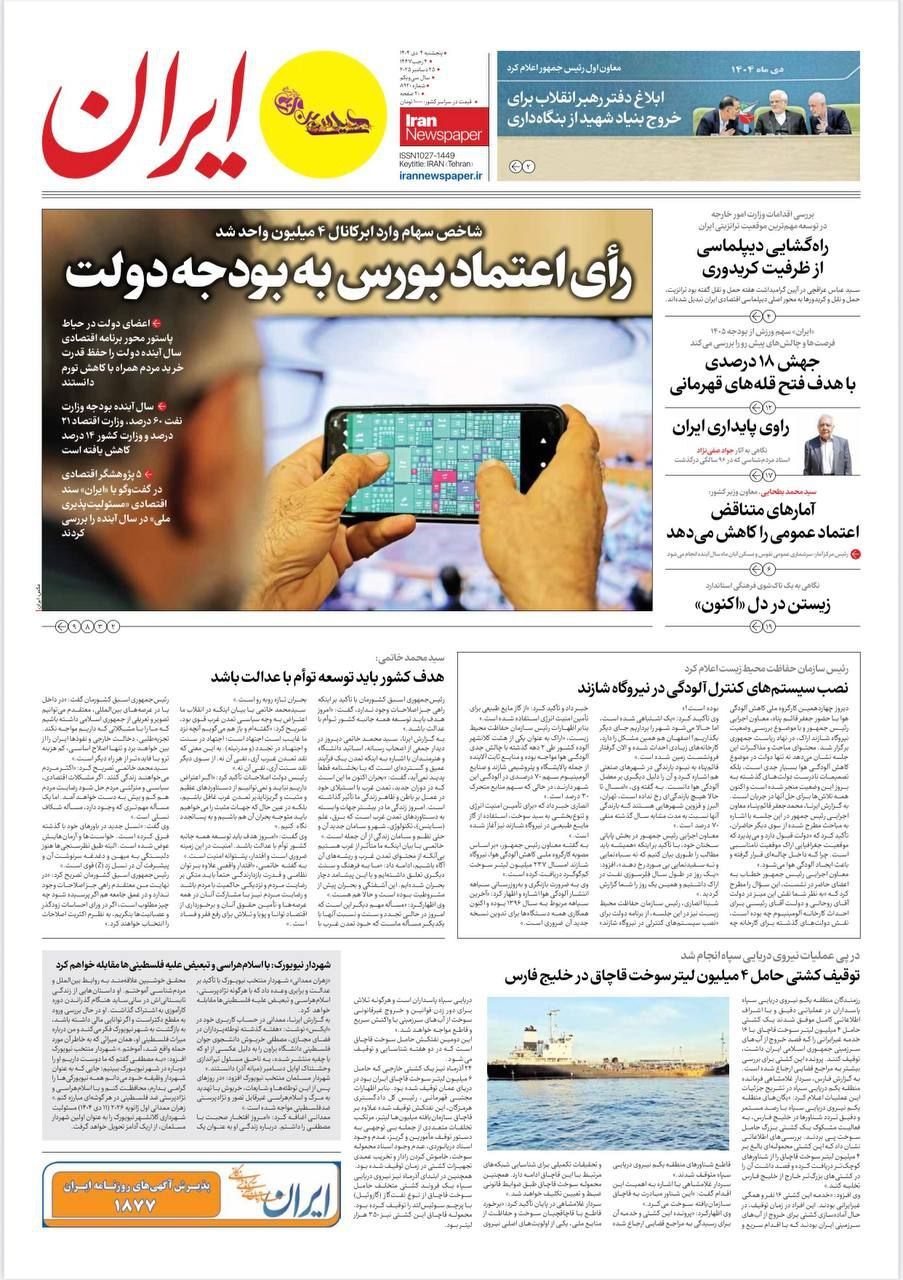 صفحه نخست روزنامههای ۴ دیماه