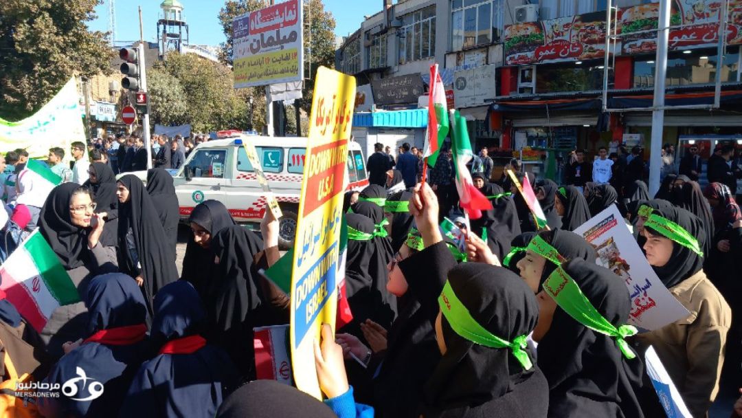 به گزارش خبرنگار گروه صوت و تصویر شبکه اطلاعرسانی «مرصاد»؛ شعارهای کوبنده «مرگ بر آمریکا»، «مرگ بر اسرائیل» و «مرگ بر استکبار» در خیابانهای این شهر طنینانداز شد و جلوهای از بیداری، بصیرت و وفاداری به آرمانهای انقلاب اسلامی را به تصویر کشید.