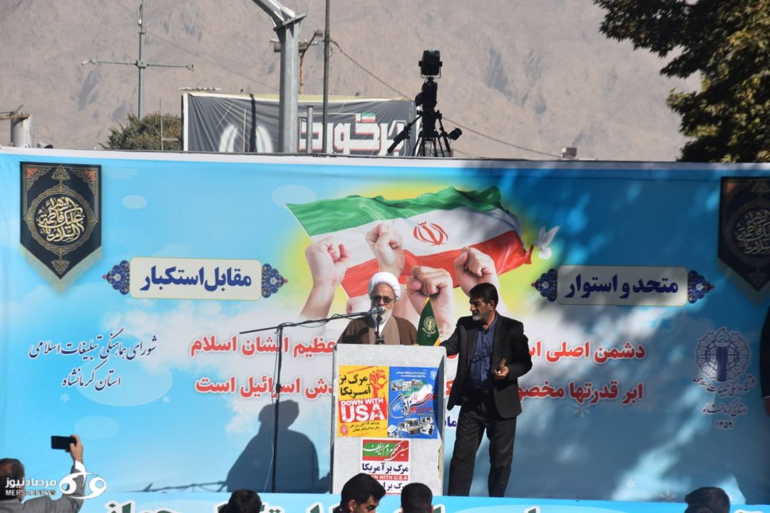 مردم ولایتمدار استان کرمانشاه، همصدا با ملت ایران، در راهپیمایی یومالله ۱۳ آبان با حضوری پرشور، انزجار خود را از رژیم کودککش صهیونیستی و حامیان مستکبر آن به نمایش گذاشتند.