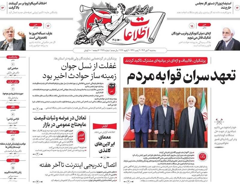 صفحه نخست روزنامه‌های‌ سه‌شنبه ۳۰ دی ۱۴۰۴