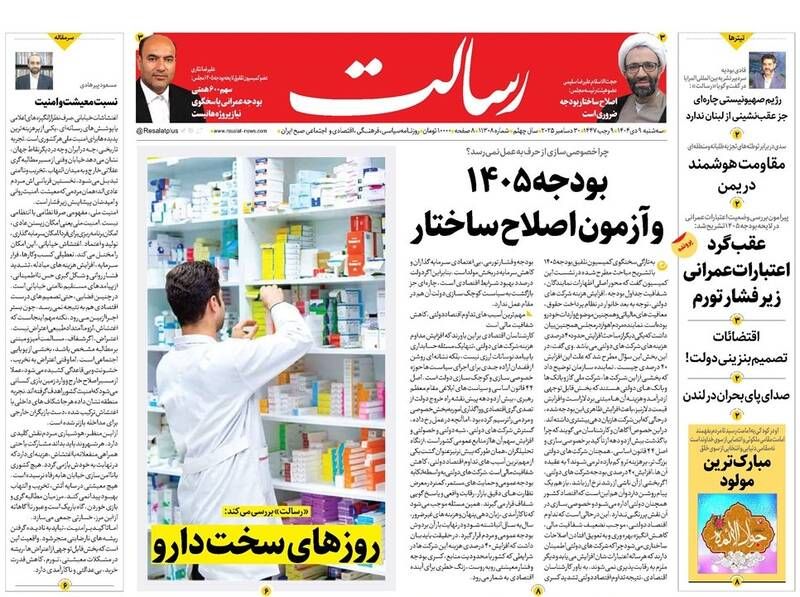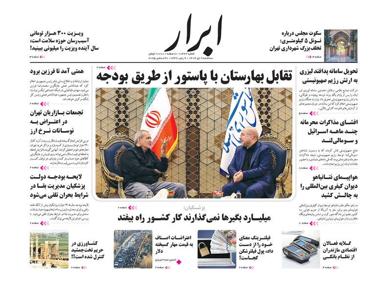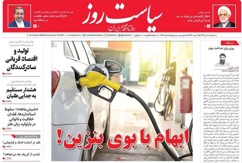 صفحه نخست روزنامههای سهشنبه ۹ دی ۱۴۰۴