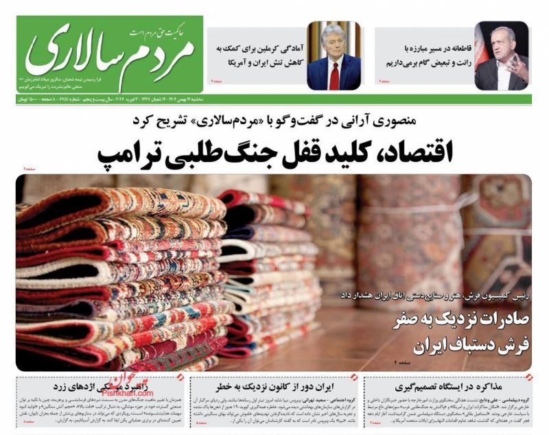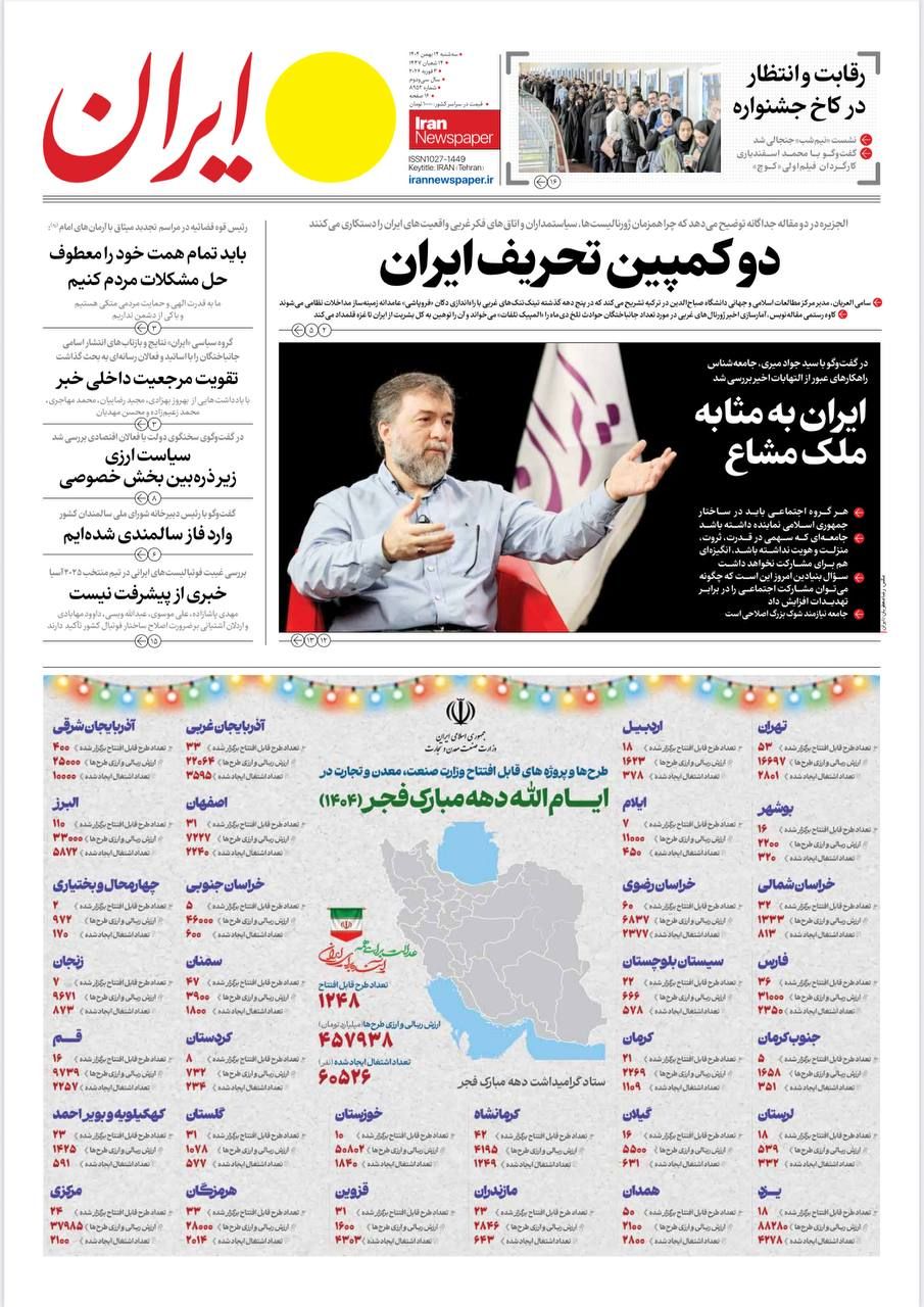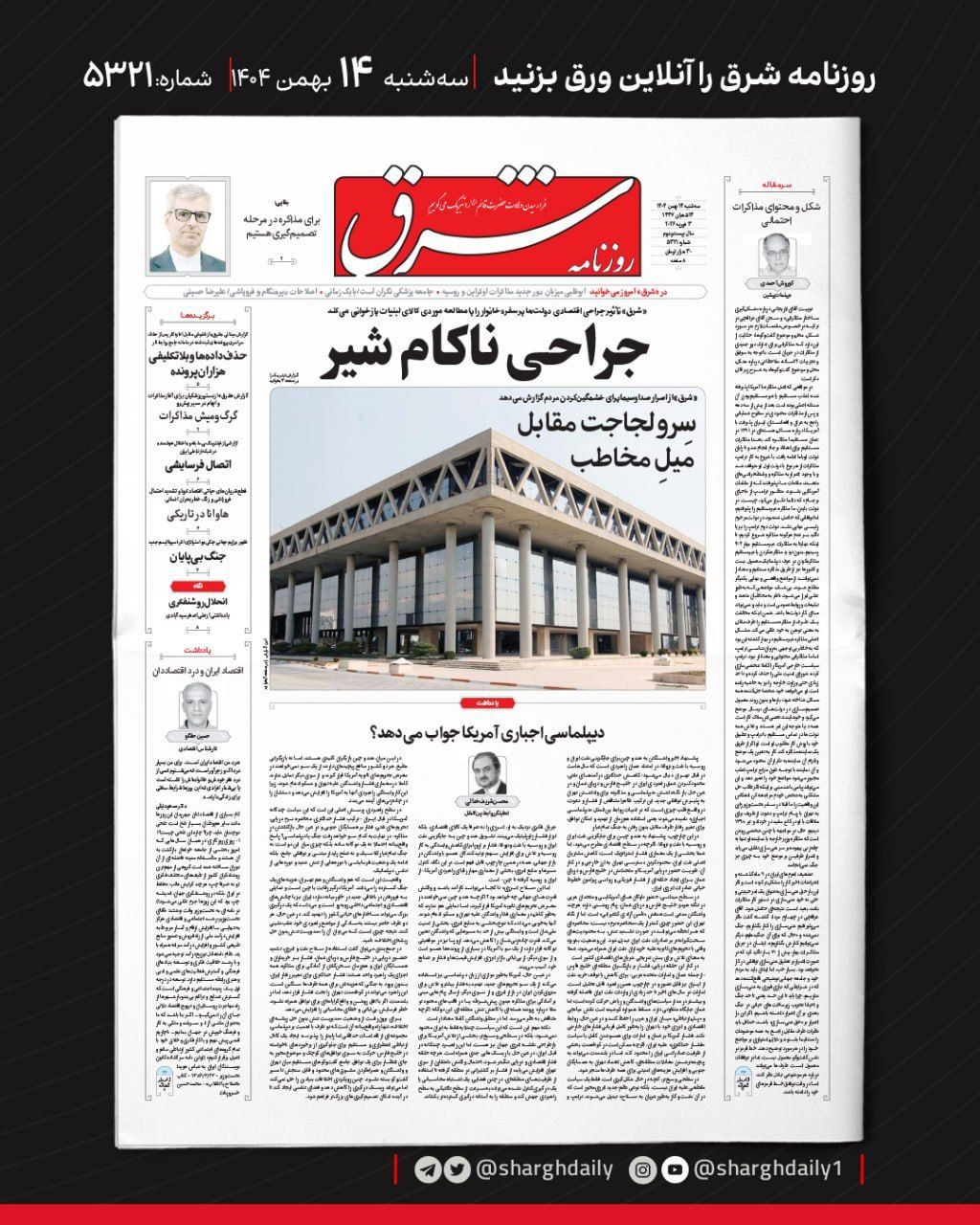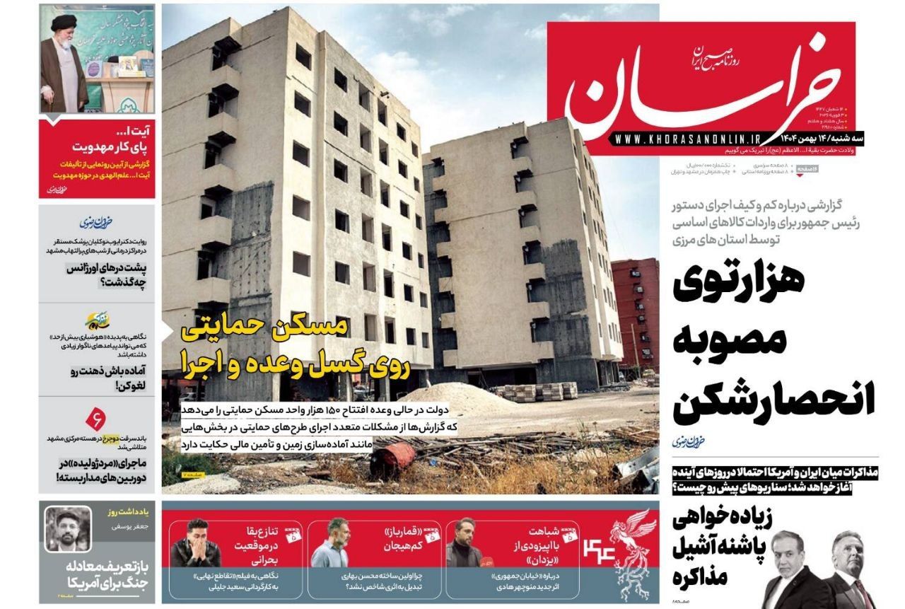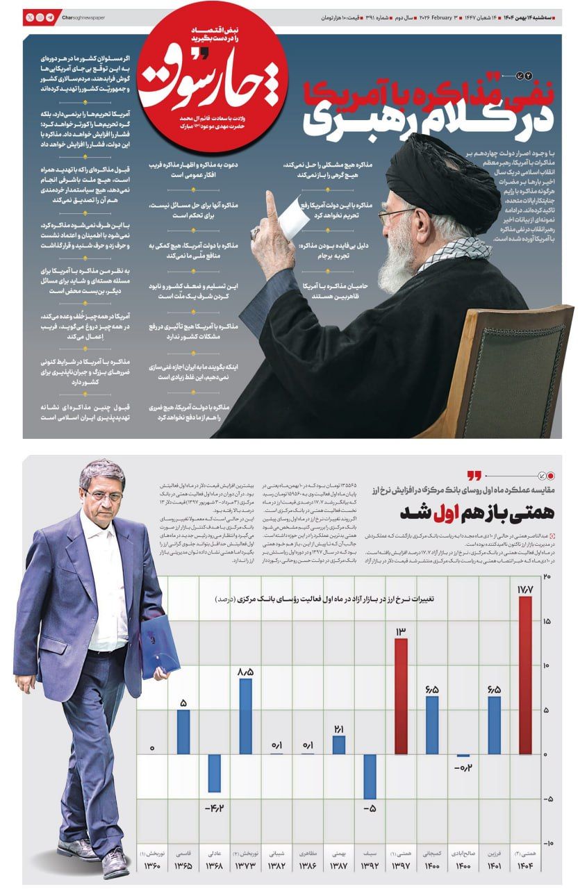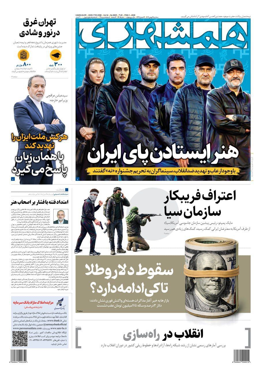 صفحه نخست روزنامههای سهشنبه ۱۴ بهمن ۱۴۰۴