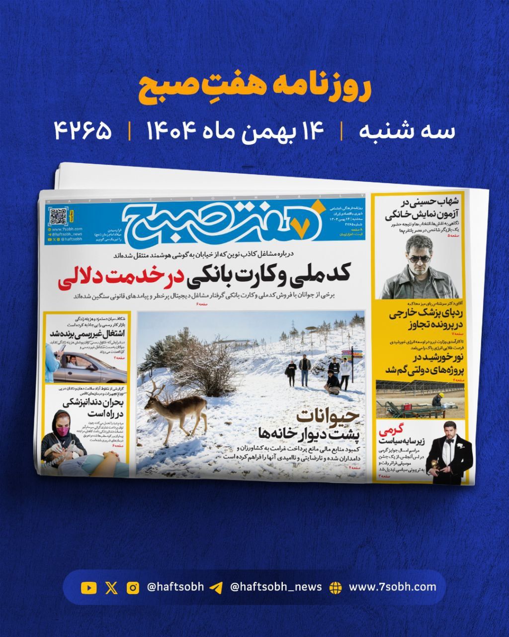 به گزارش شبکه اطلاعرسانی «مرصاد»؛ صفحه اول روزنامههای امروز سهشنبه ۱۴ بهمنماه را مشاهده میکنید که مهمترین اخبار و تحولات کشور را در حوزههای سیاسی، اقتصادی و اجتماعی منعکس میکند.
